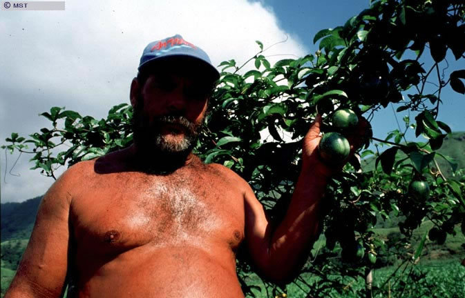 "Sem-Terra" mostrando sua produção de maracujá orgânico no assentamento Casas Altas, Rio de Janeiro